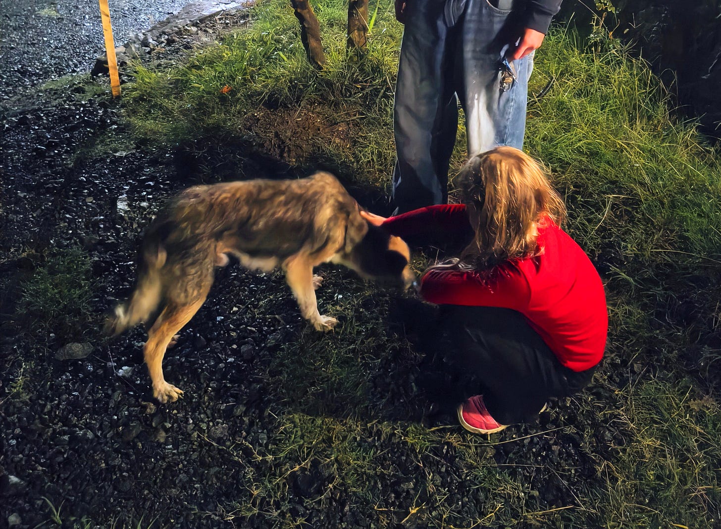 Angst haben wir keinen Moment, denn seine Augen strahlen nur eines aus: „Ich habe Hunger, bitte gebt mir was.“ Kurzerhand greife ich zu Iras Trockenfutter und schütte ihm eine große Portion davon ins Gras.